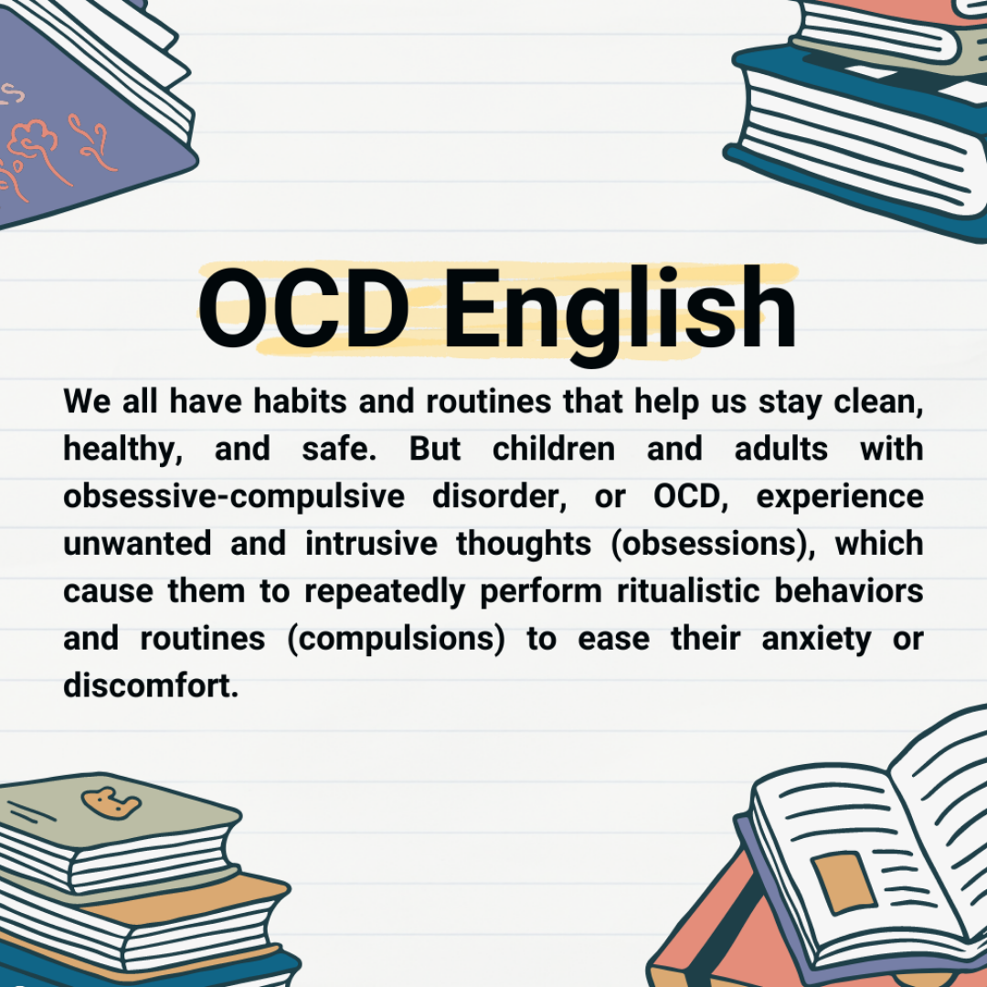We all have habits and routines that help us stay clean, healthy, and safe. But children and adults with obsessive-compulsive disorder, or OCD, experience unwanted and intrusive thoughts (obsessions), which cause them to repeatedly perform ritualistic behaviors and routines (compulsions) to ease their anxiety or discomfort.