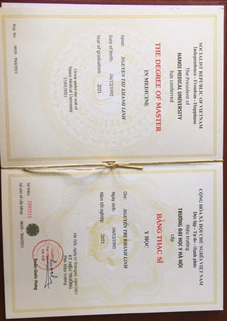 - 2019 – 2021: Đại học Y Hà Nội – Thạc sĩ Y học